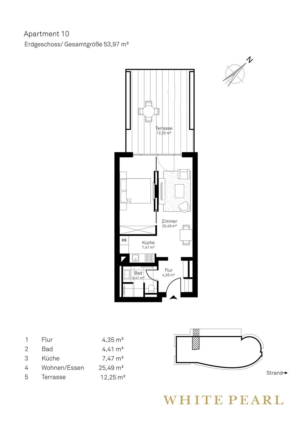 Nur wenige Gehminuten vom Strand befindet sich das Luxusapartment 0.10 im Erdgeschoss des "White Pearl" und bietet Platz für 2 Personen auf 54 m² - auch Ihr Hund ist willkommen!