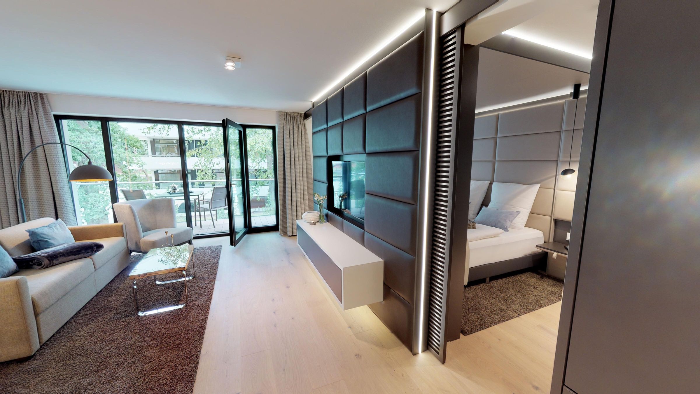 Erleben Sie eine virtuelle Reise durch das Apartment mit dem 360°-Rundgang!