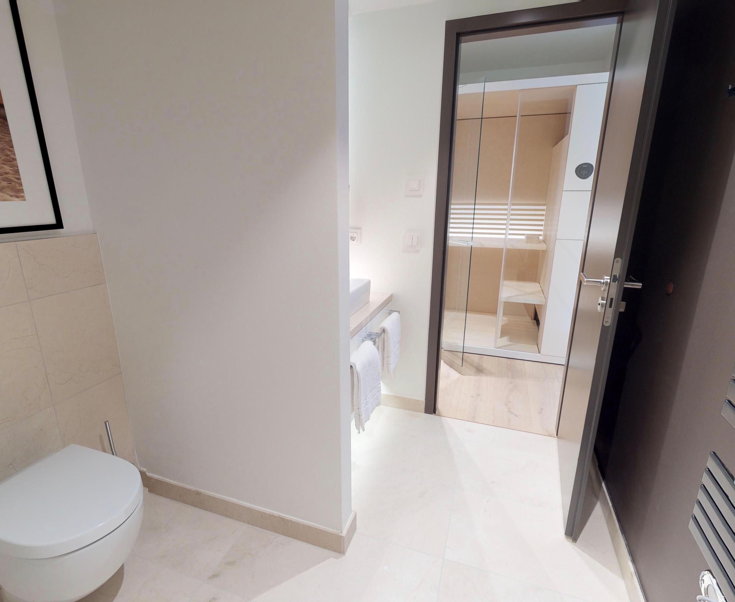 Highlights des Apartments sind die eigene Sauna (2,37m x 1,19m) sowie der möblierte Balkon Richtung Ostseite, der zu entspannten Stunden an der frischen Meeresluft einlädt! Zur Wohnung gehört ein Tiefgaragenstellplatz.