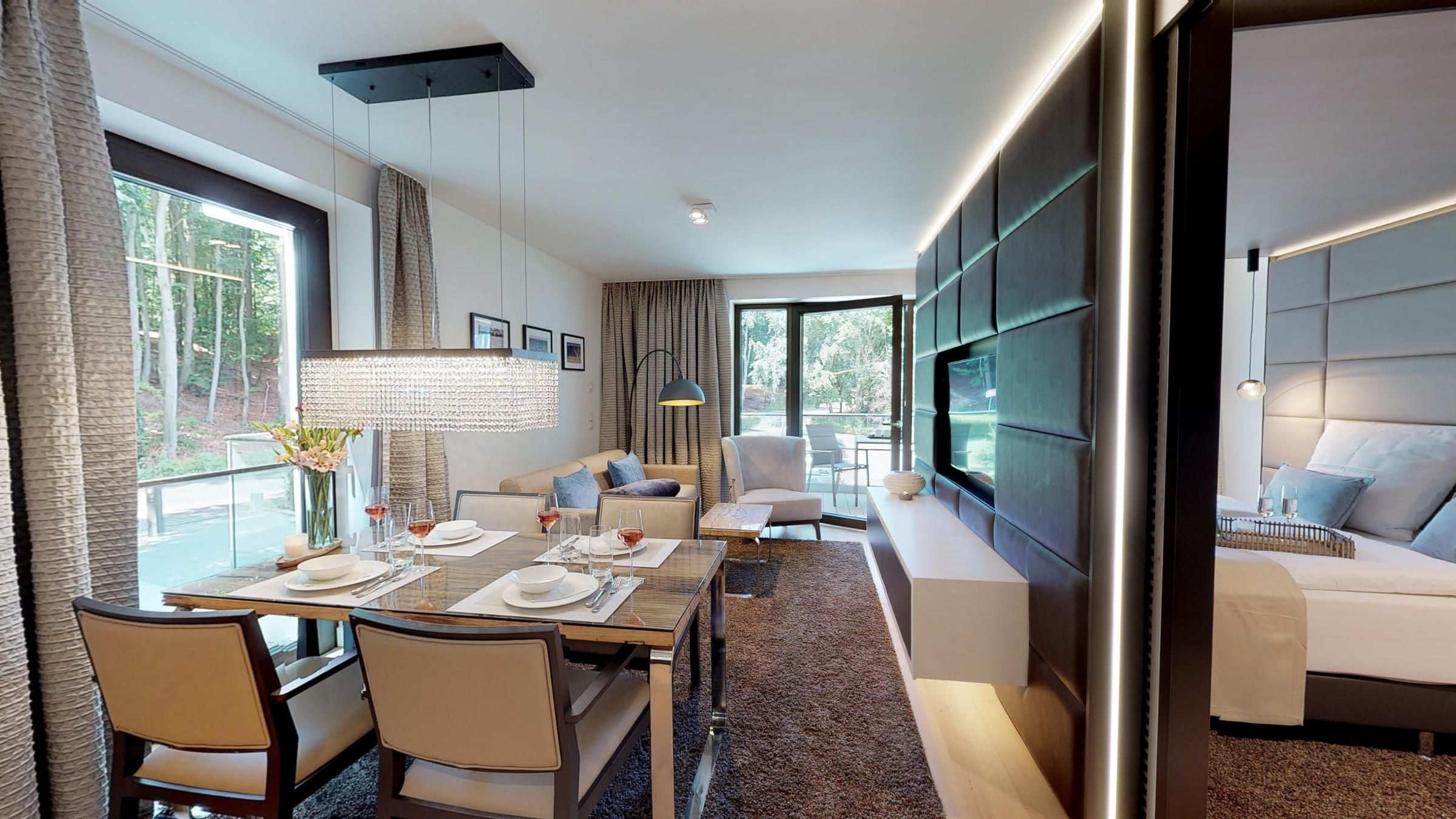 Erleben Sie eine virtuelle Reise durch das Apartment mit dem 360° Rundgang!